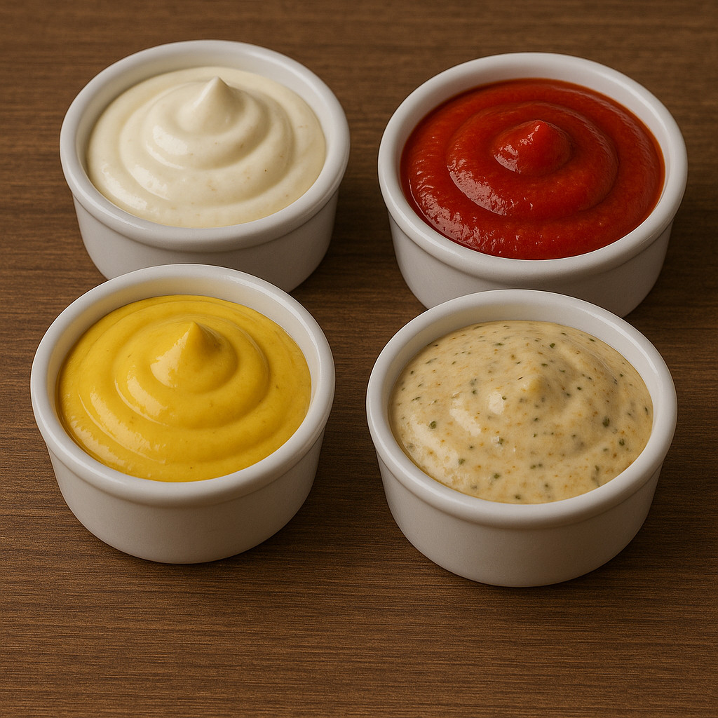 3 leisos maioneză 20gr, ketckup 20gr, ceapă roșie 5gr, boia afumată 2gr, sos worchestershire 1ml, sare 0,3gr, piper 0,2gr