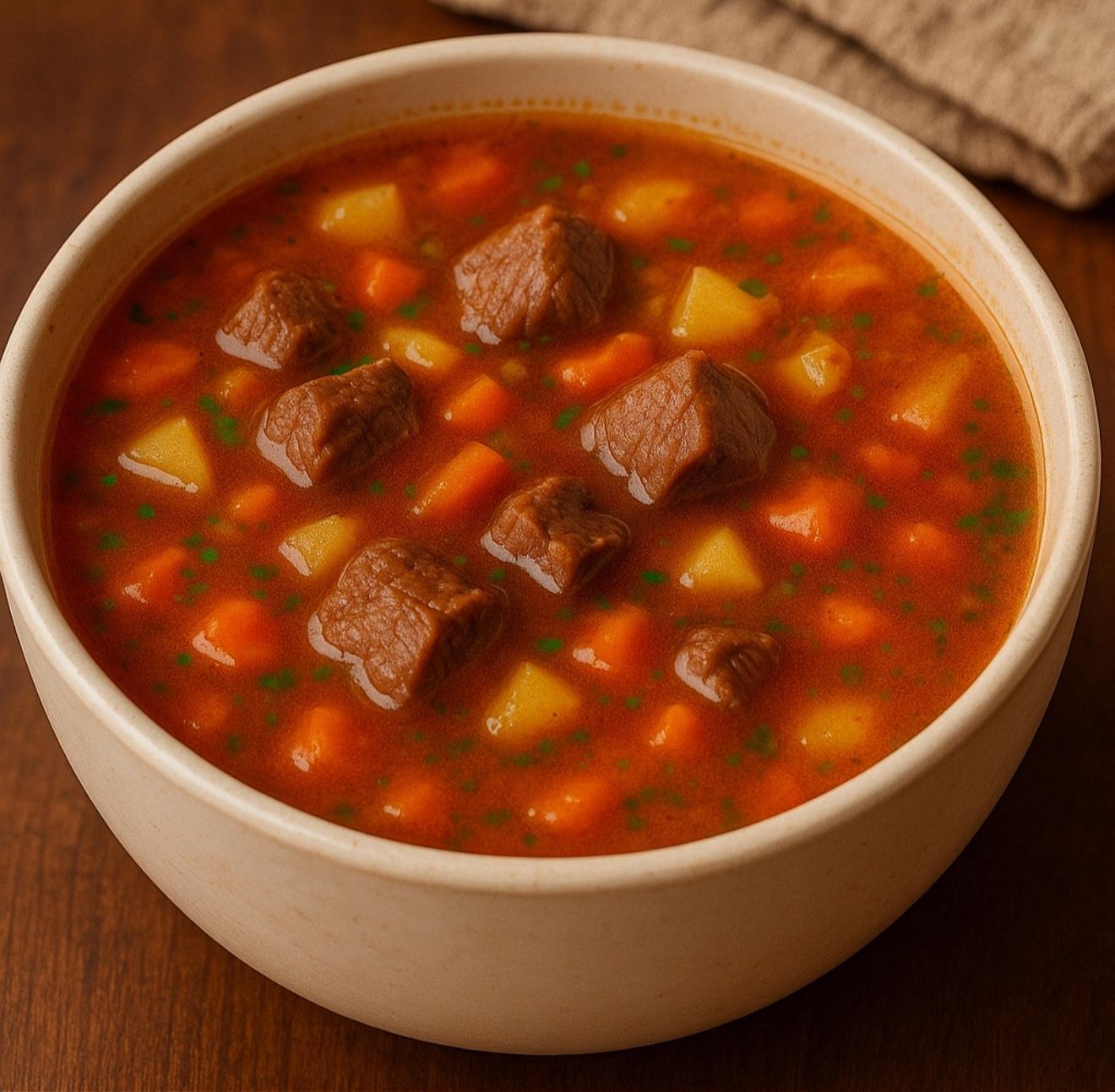 Categorie: Ciorbecarne de vită, sare, ceapă, păstârnac, morcov, țelină, ardei gras, roșii cuburi, borș, piper, foi de dafin, leuștean. porțiile cântăresc 400gr.