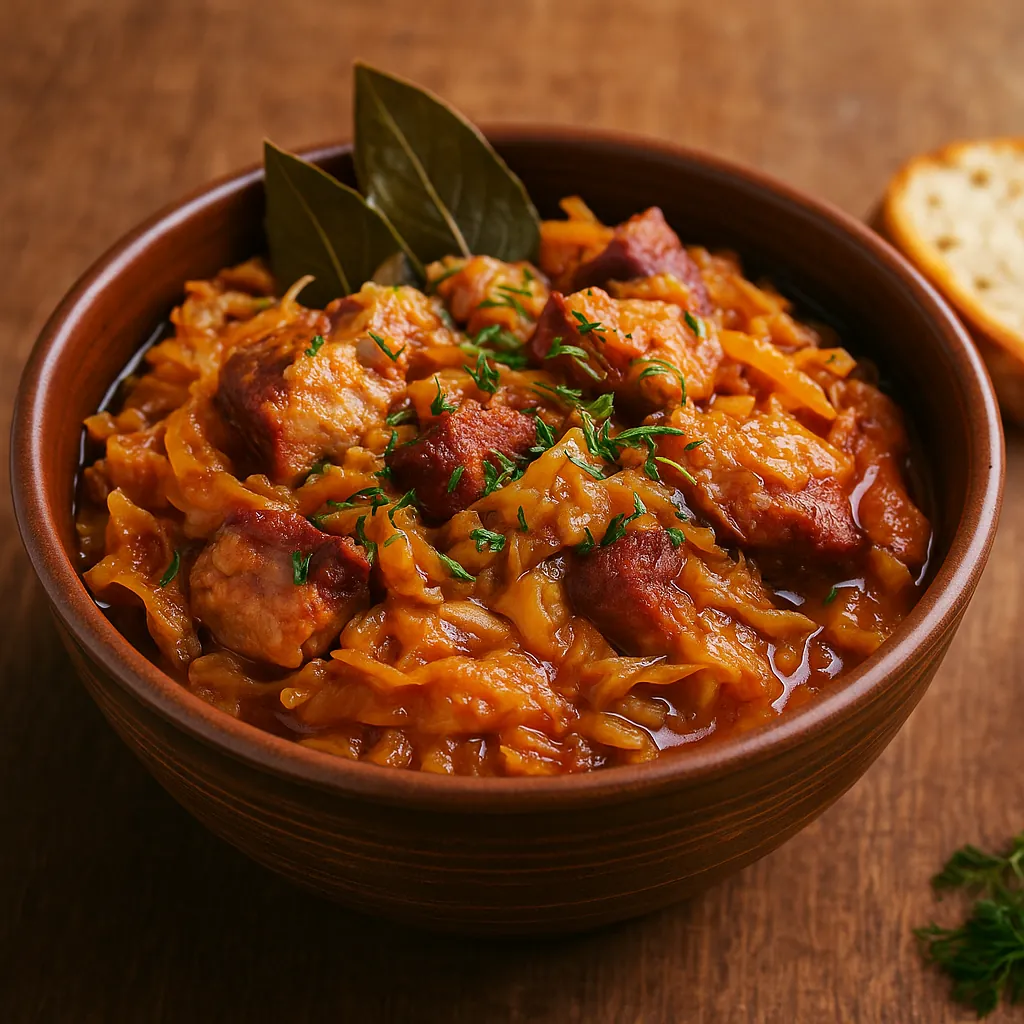 varză călită cu cărniță de porc afumată și un ardei iute 350-400 gr